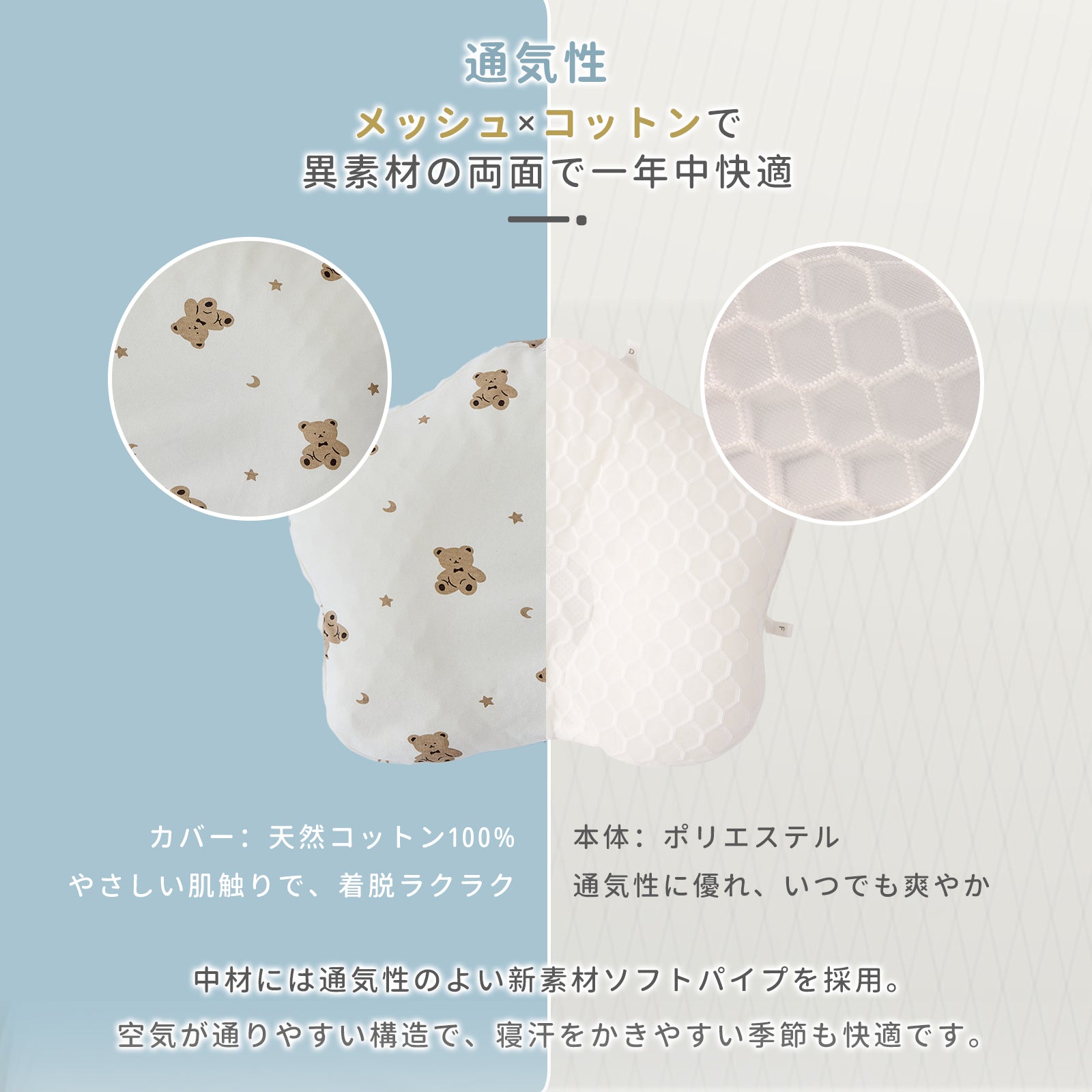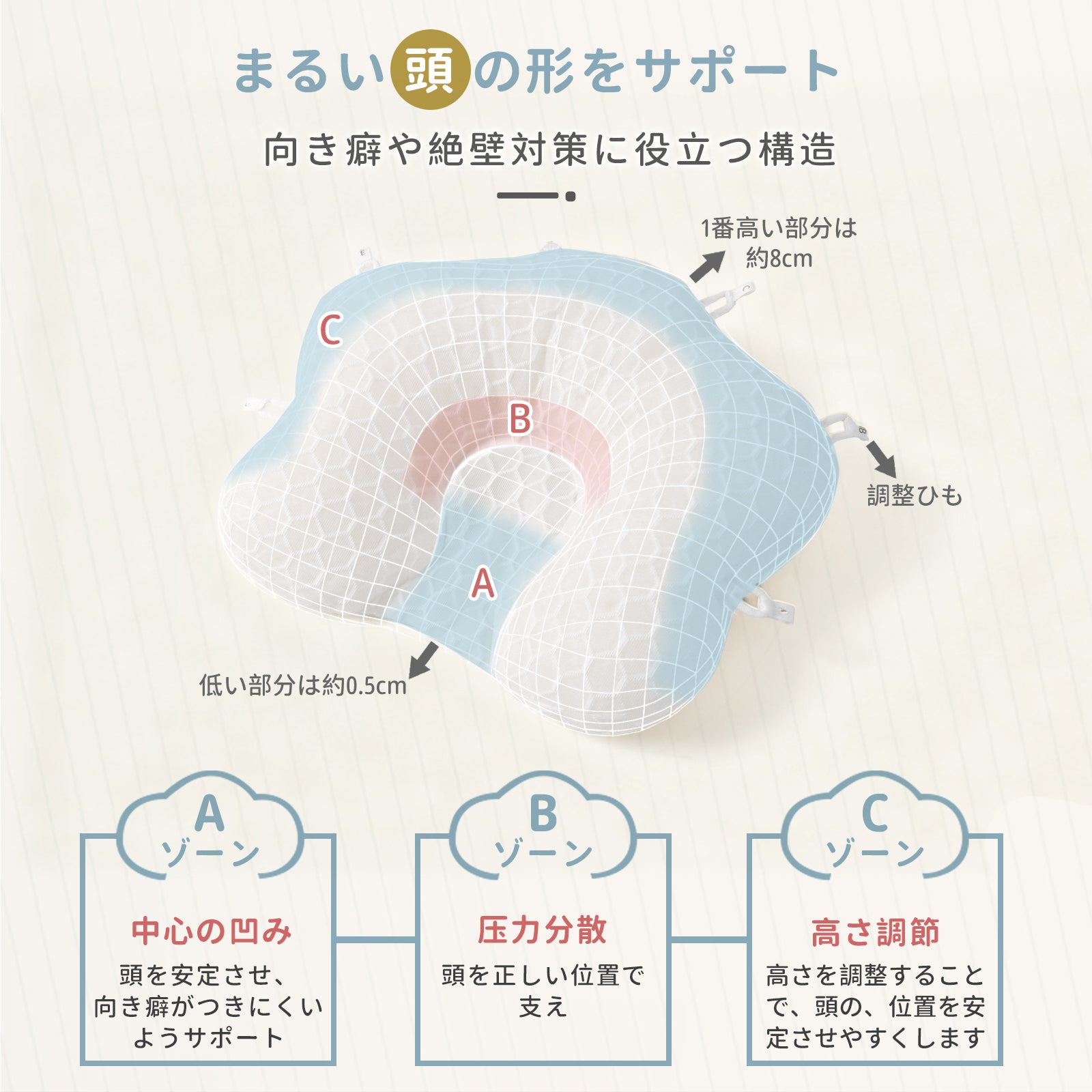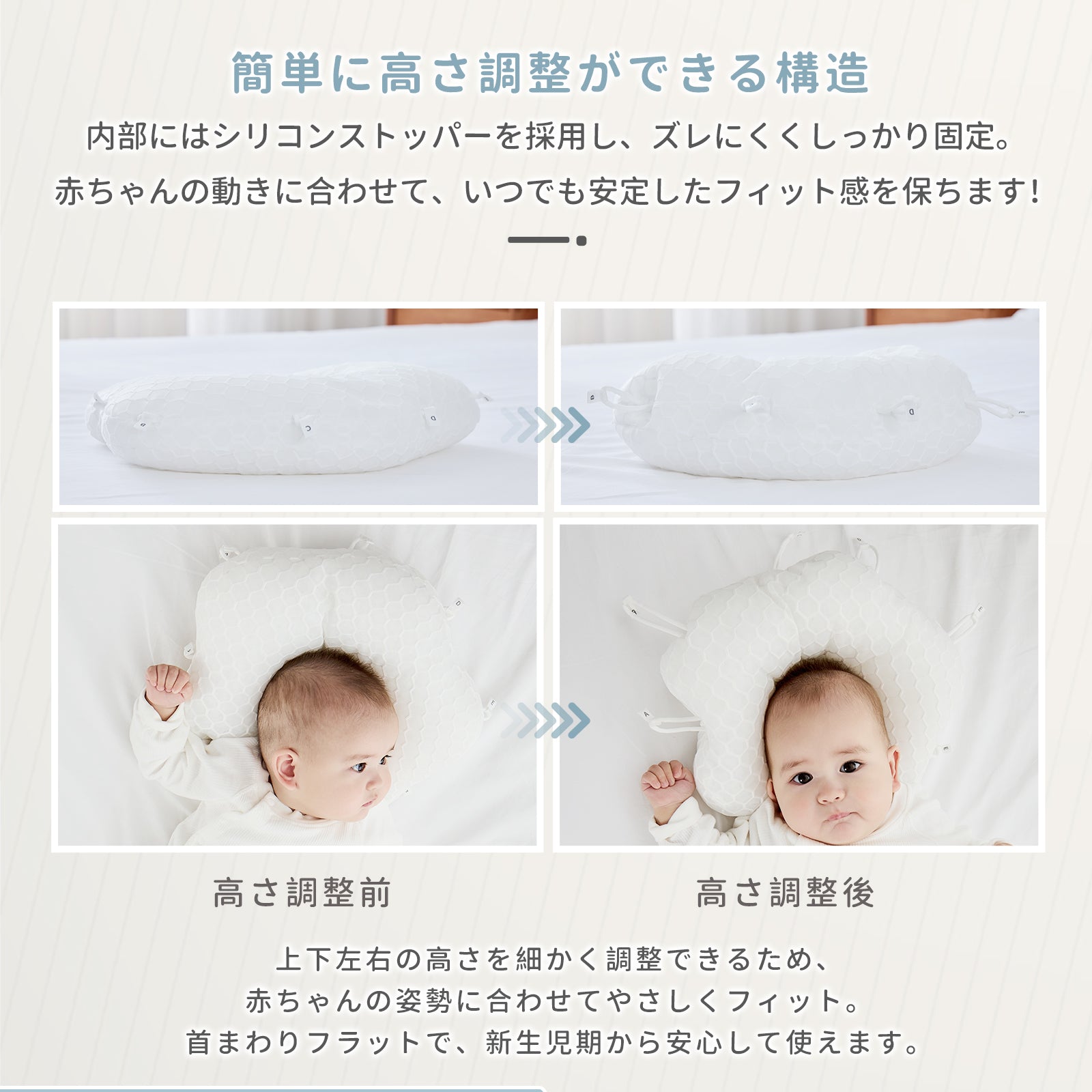 やさしく支えて、形づくりをサポート 6方向の高さ調整と通気ソフトパイプで、快適な寝心地のベビー枕 国内安全検証済 1年保証 絶壁防止 新生児 長く使える 通気性 丸洗いOK 向き癖防止