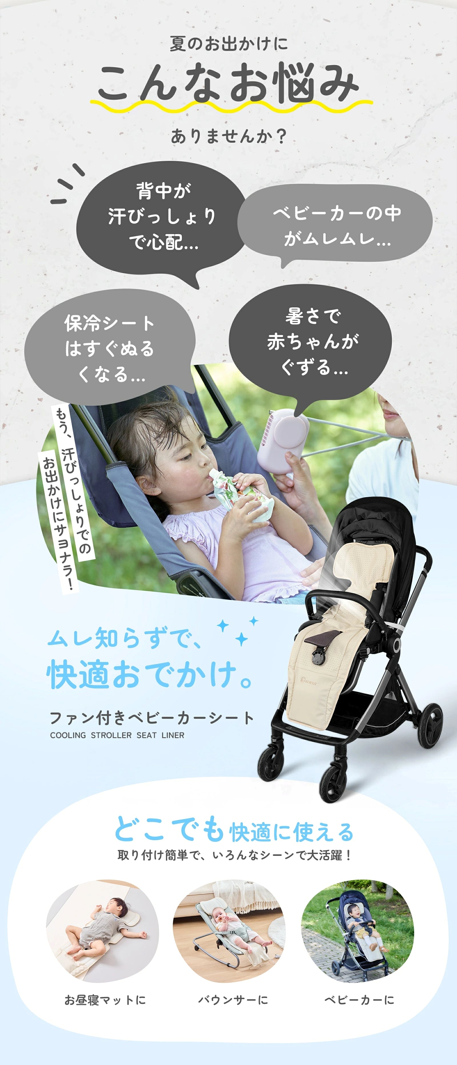 ベビーカーシート ファンシート 扇風機 冷感 足元防水 保冷剤ポケット付 暑対策 クールシート 保冷シート ファン付き チャイルドシート ベビー メッシュ シリコン アイスシート ひんやり 車内 GUMODE