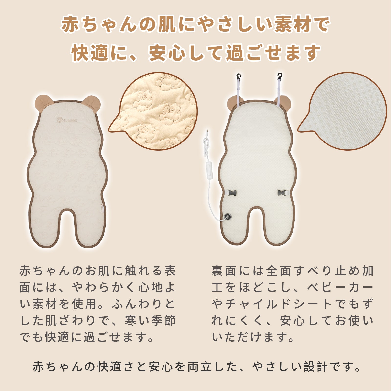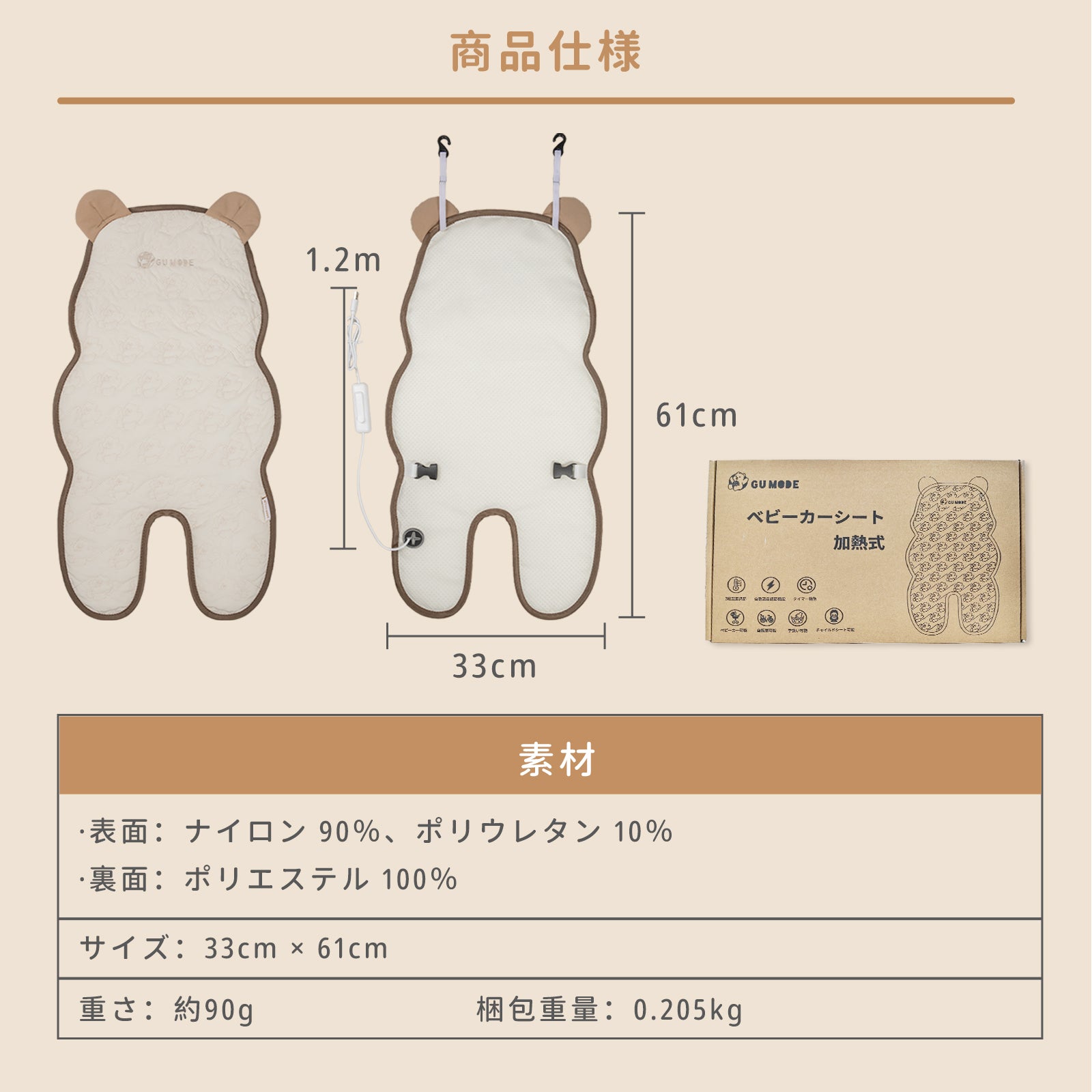 ベビーカーシート 防寒 ウォームアップ あったか ヒーター チャイルドシート対応 加熱 3段階温度 30-90分タイマー 自動温度キープ USB給電 手洗いOK すべり止め 33 61