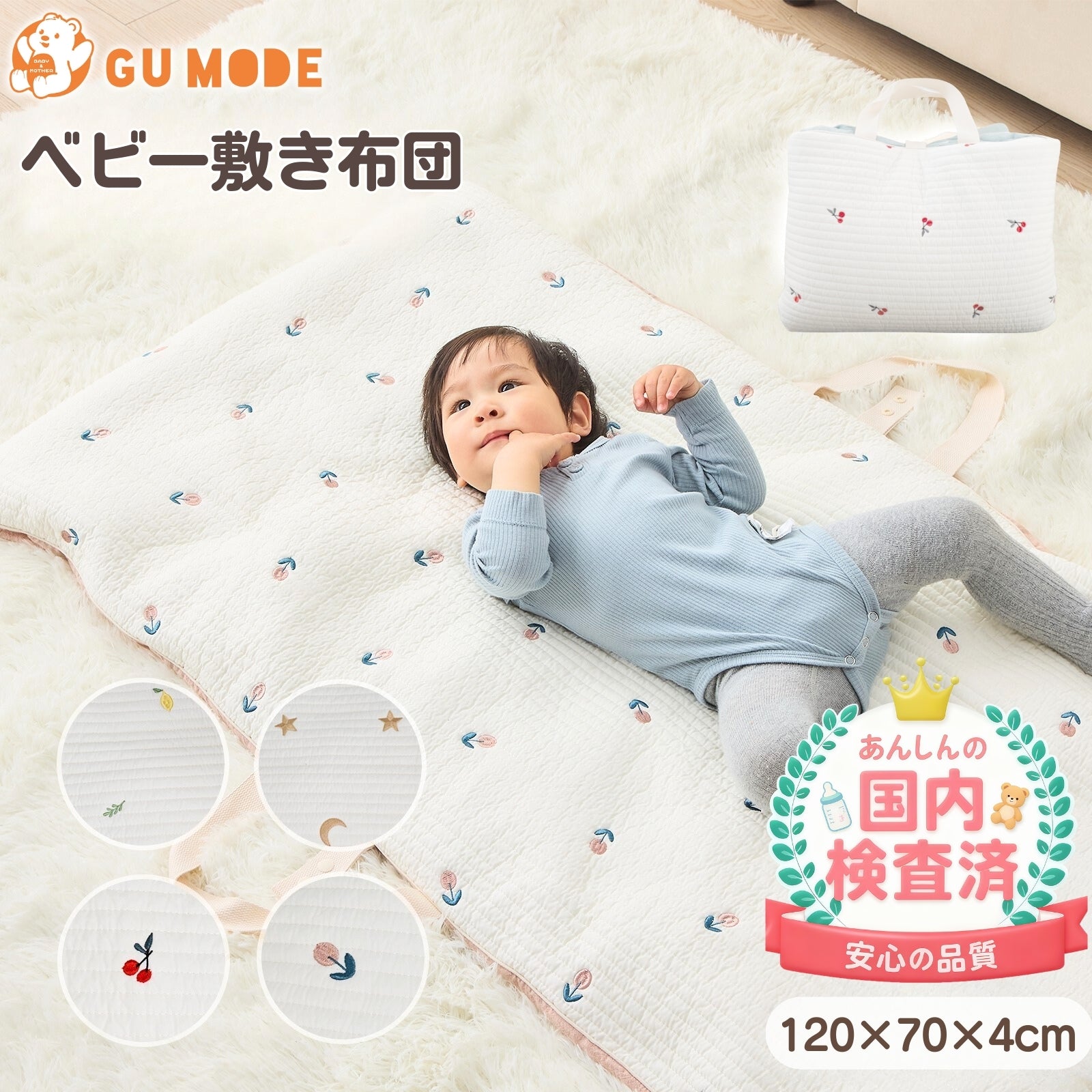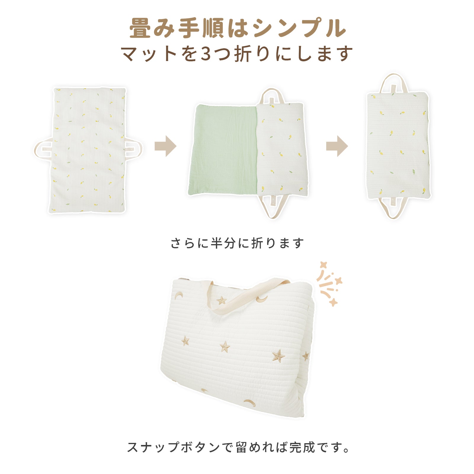 お昼寝マット 持ち運び 赤ちゃん 敷布団 洗える 刺繍 マット 育園 入園 三つ折り 折りたたみ お出かけ プレゼント イブル イブルマット 綿100% 120×70cm 収納袋付き 新生児 出産準備