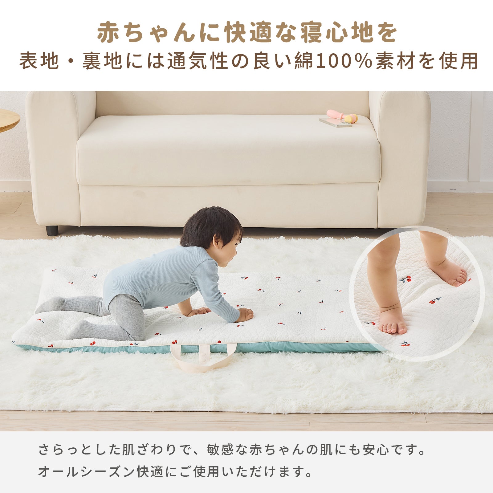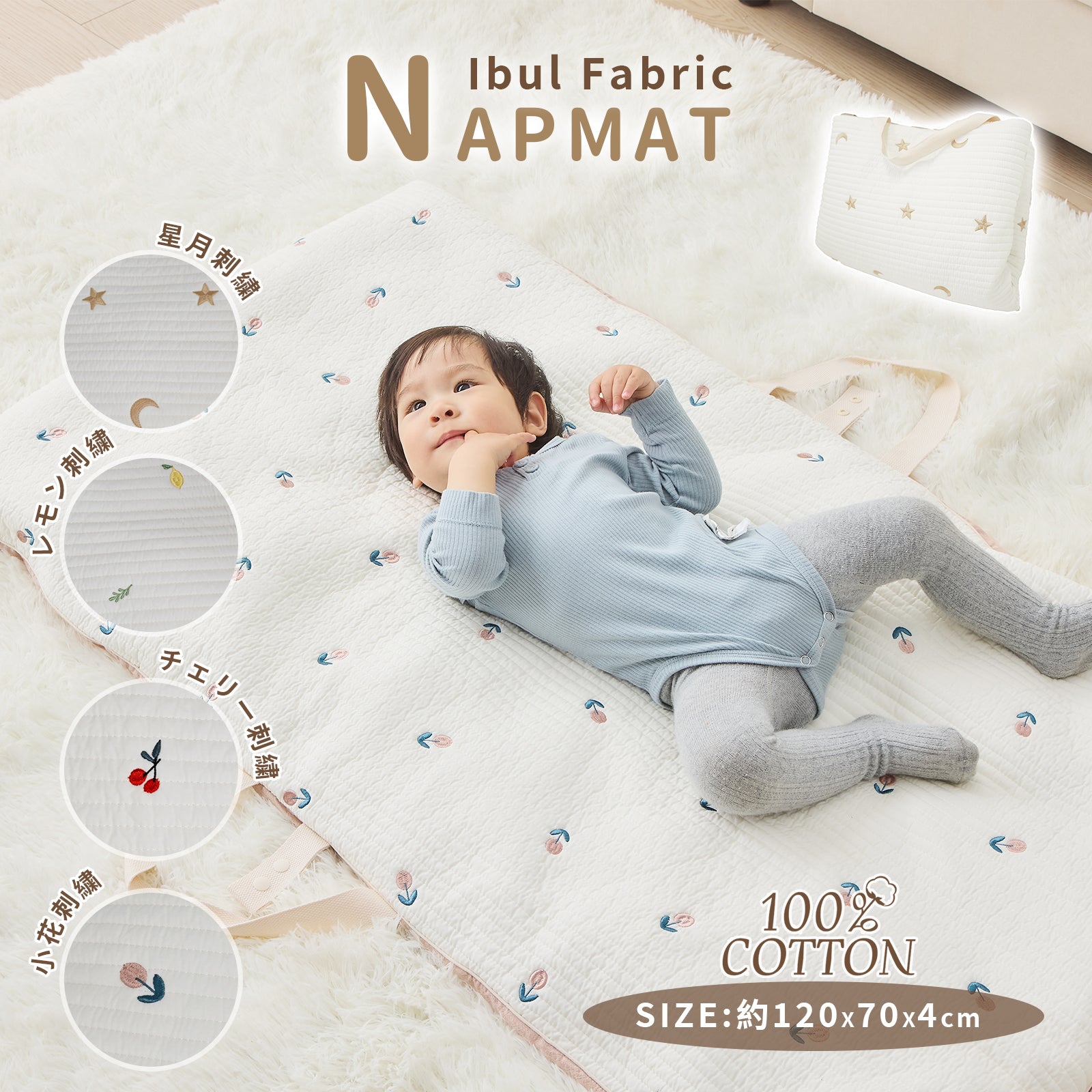 お昼寝マット 持ち運び 赤ちゃん 洗える 刺繍 マット 敷布団 育園 入園 三つ折り 折りたたみ お出かけ プレゼント イブル イブルマット 綿100% 120×70cm 収納袋付き 新生児 出産準備