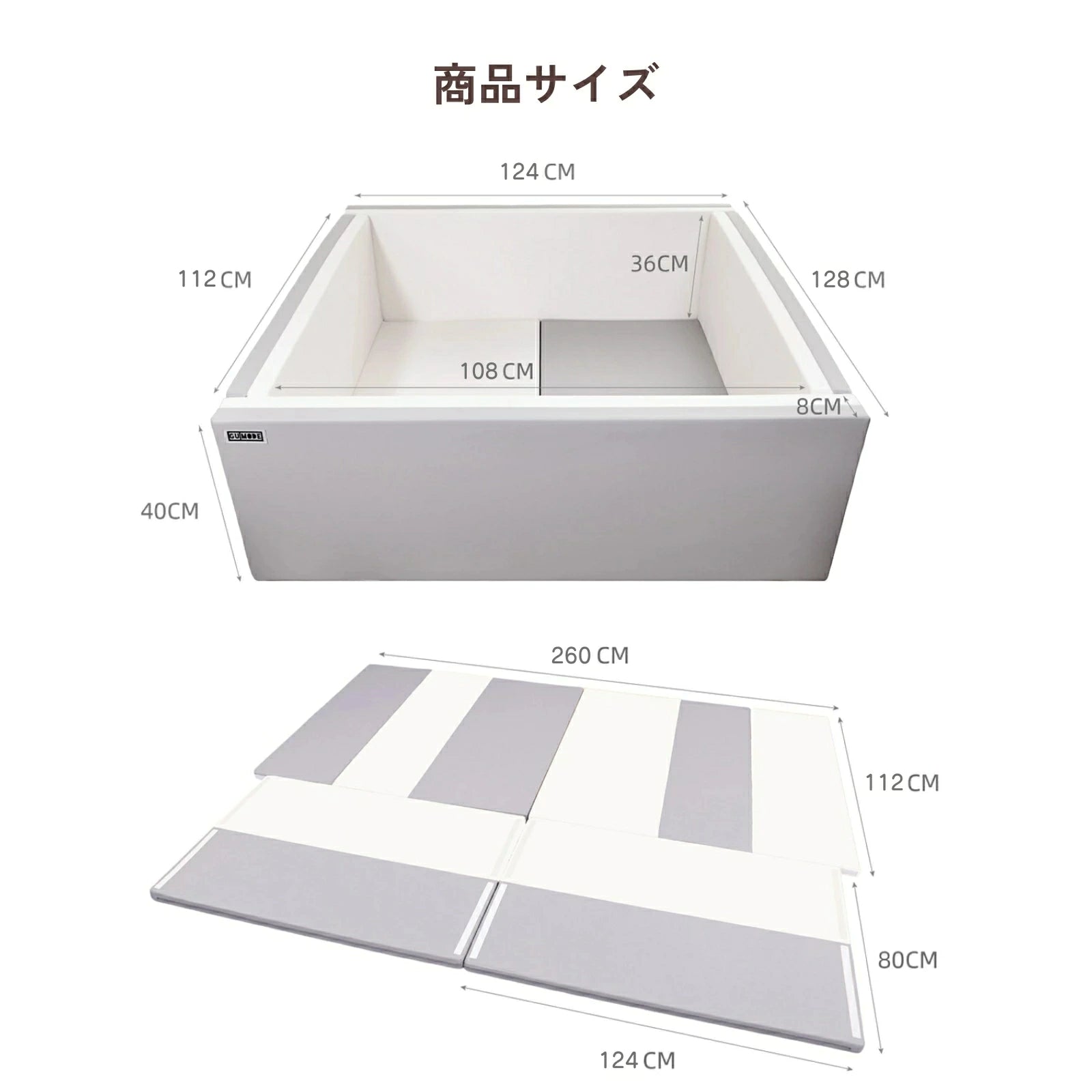 サークルマット ベビーサークル 折りたたみ 6way プレイマット 抗菌 ベッド ベビーマット 床暖房対応 防水 クッションマット 厚手 プレイヤード コンパクト ベビー 124×130×40cm