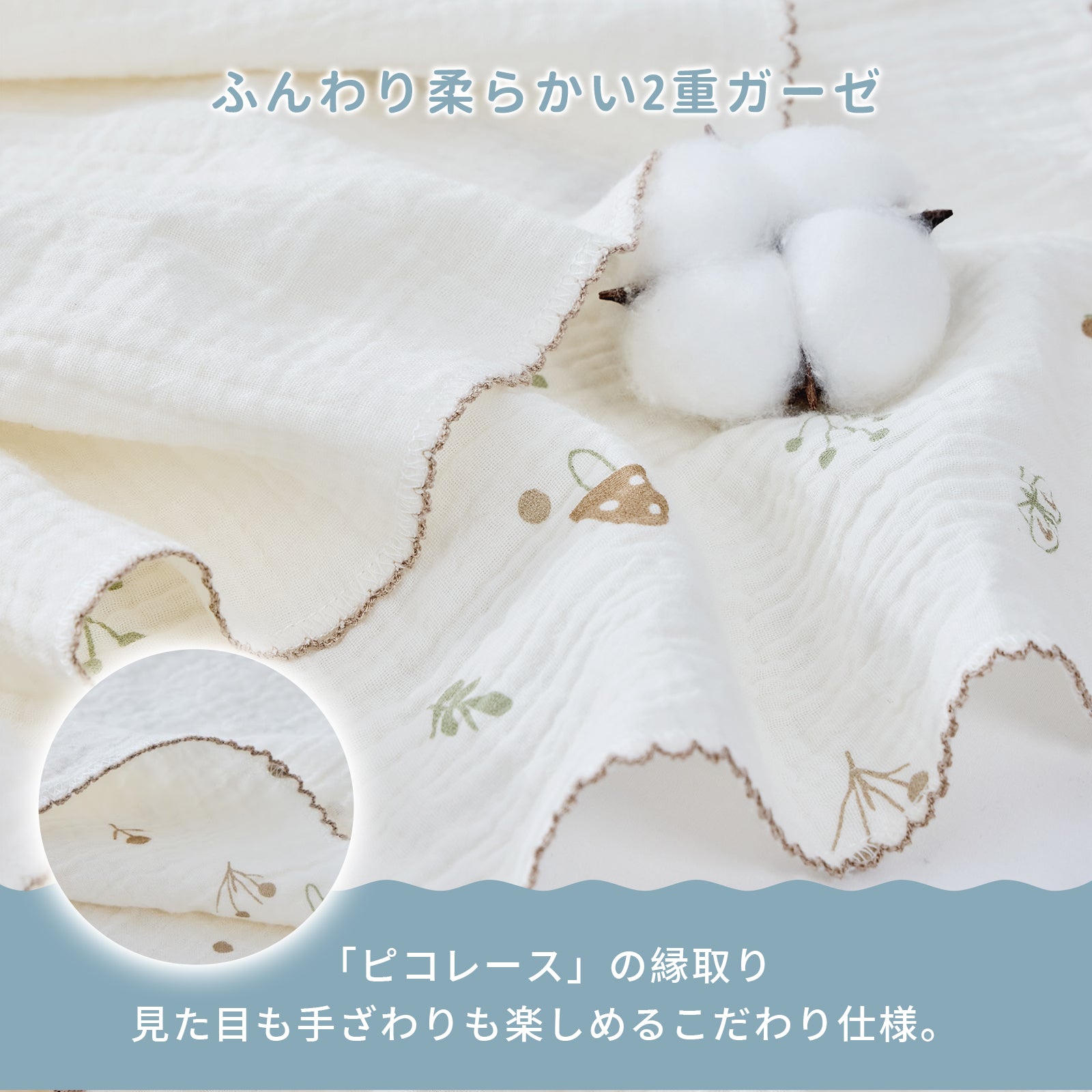 ガーゼケット ガーゼブランケット 綿100% 6重 2重 2枚セット おくるみ ベビー 出産祝い ギフト 春夏秋冬 オールシーズン 洗える 大判 ピコレース シェルステッチ GUMODE