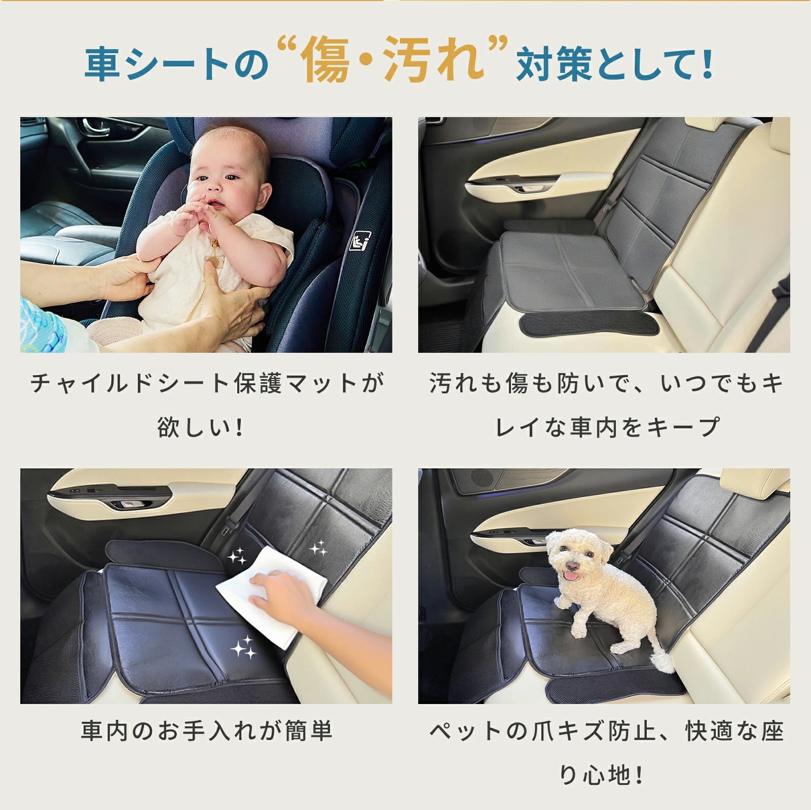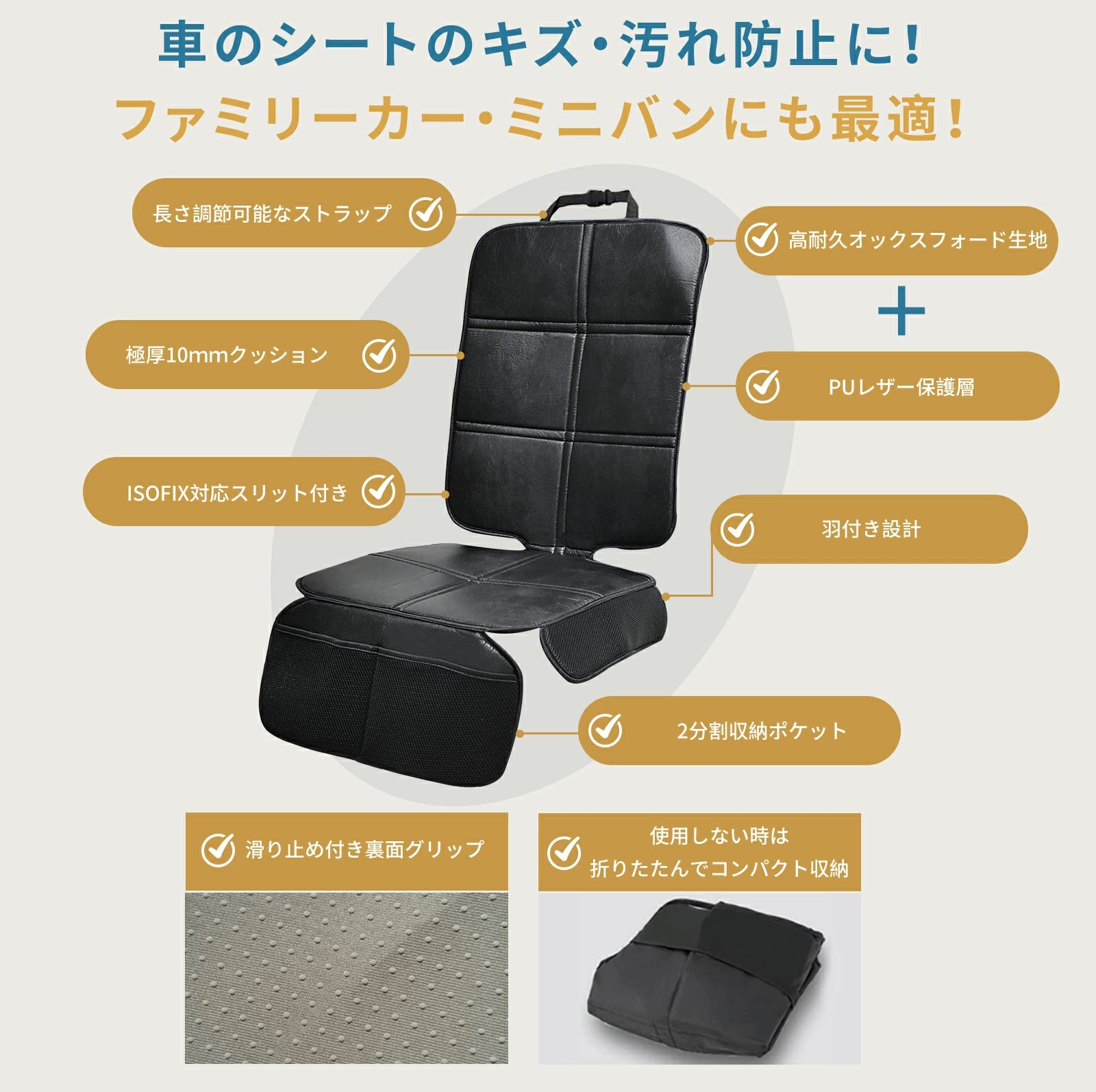 チャイルドシート・ジュニアシート対応 保護マット クッション 傷防止 PUレザー 撥水&防汚 オックスフォード 軽量 通気性 ISOFIX対応 滑り止め付き