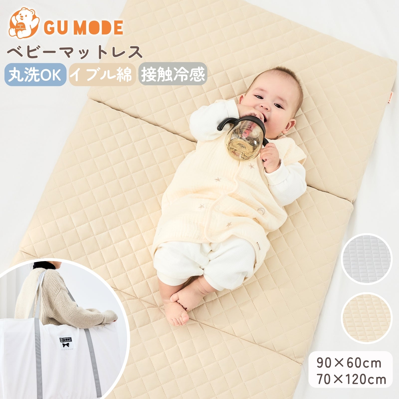 【国内検査済】ベビーマットレス 洗える 折りたたみ 2つ折り/3つ折り リバーシブル 冷感×コットン調 高反発 通気性 体圧分散 お昼寝マット 保育園 収納袋付き カバー洗濯OK 中材シャワー洗いOK 60×90 70×120 zmat01/02 GUMODE